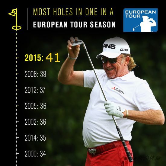星期六在荷兰公开赛上,瑞典选手马格鲁斯-卡尔森(Magnus A Carlsson)打出本赛季第40个一杆进洞。在肯内梅尔(Kennemer G&CC)第八洞,227码,三杆洞,马格鲁斯-卡尔森3号铁,直接将球打入洞中。这让2015年已经超过了2006年39个一杆进洞的前纪录。